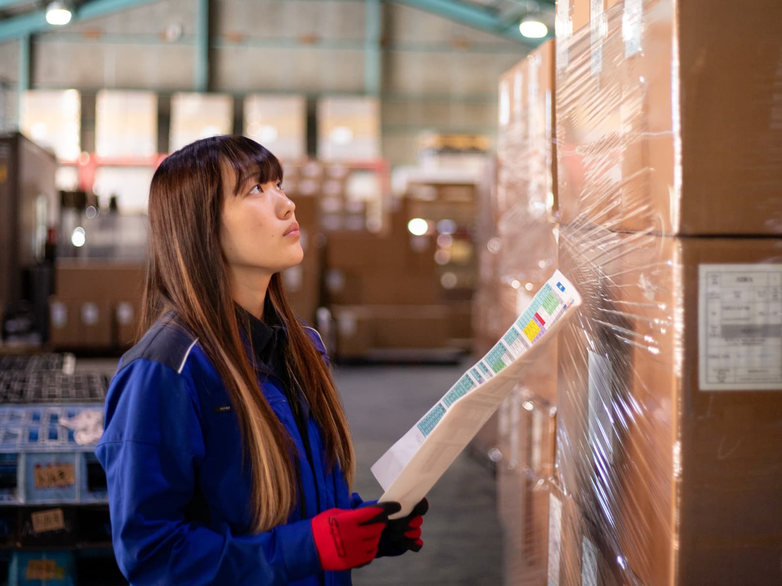 大手自動車メーカーのシートカバーを出荷するために指示をいただいた通りに順列したり、その他の自動車部品の出荷準備をしたりしています。コンテナの荷下ろしや、納入されたものをリフトで移動させたりもしています。